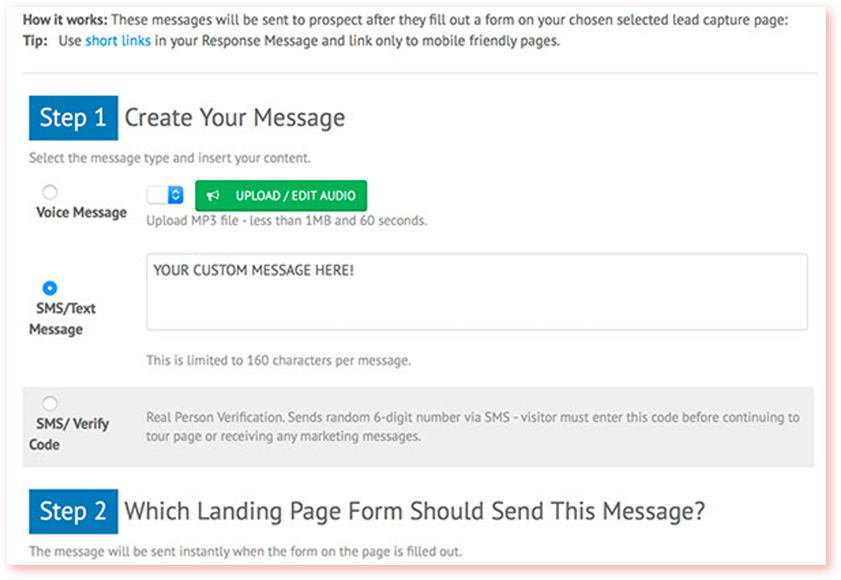 Instant SMS Messages to prospects.